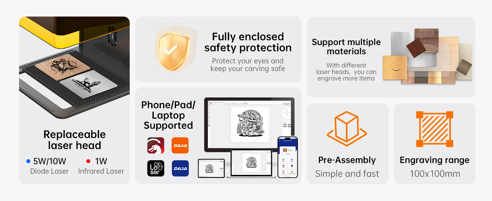 DAJA DJ6 Pro Laser Engraver Portable Safety Cover Cut Business Engraving Machine for Metal Stainless steel Jewelry Wood Acrylic